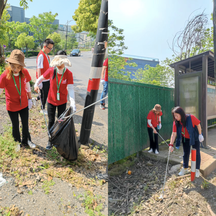 在對園區(qū)進行全方位清掃后,黨支部成員們帶上清潔工具,走出園區(qū),對周邊的環(huán)境進行清潔。